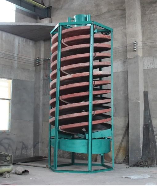 Chute spiral adalah peralatan pemisahan gravitasi, terutama digunakan untuk memisahkan partikel mineral dengan perbedaan besar dalam berat jenis. Ia menggunakan gaya sentrifugal inersia yang dihasilkan ketika lumpur mengalir di dalam chute spiral untuk memisahkan partikel mineral dengan berat jenis yang berbeda.